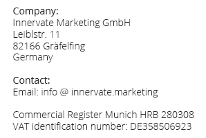 In order to exercise the right to object, the data subject may contact Innervate Marketing GmbH.